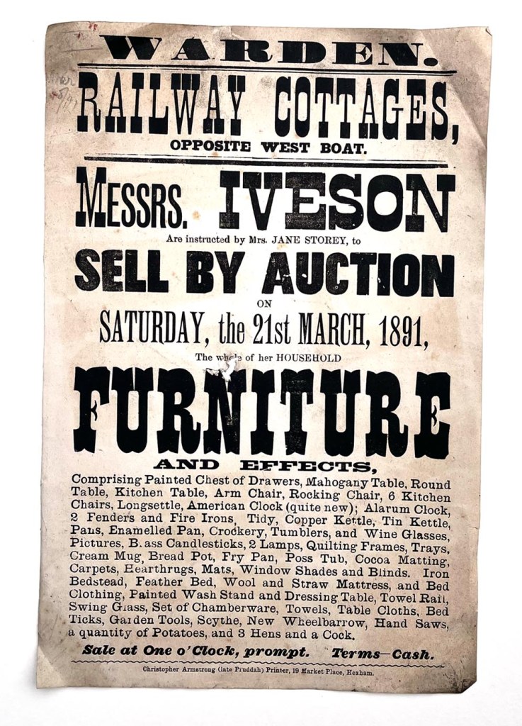 Whilst visiting the Vintage Emporium, I also bought another Victorian poster to add to my collection. The owner told me the story how when they opened the shop, there was a secret cubby hole with a huge cache of these letterpress posters. Once upon a time, every town had at least one printer, ready to spring into action to announce sales of goods, or music hall shows, or public meetings. When I did my project in Hartlepool in 2022/3, their printer was John Procter & Sons (many of their posters are collected in a wonderful book called Victorian Delights By local historian Robert Wood). So it seems your printing maestro was called Christopher Armstrong, of 19 Market Place. But there’s something about the texture of these posters that’s wonderful, as the blackest of inks hits the cheap paper, & here we are, all this time later, still admiring them… Does anyone know anything else about this print workshop? If I’d had the money, I would have bought all that the Vintage Emporium (sadly, now gone),were selling…